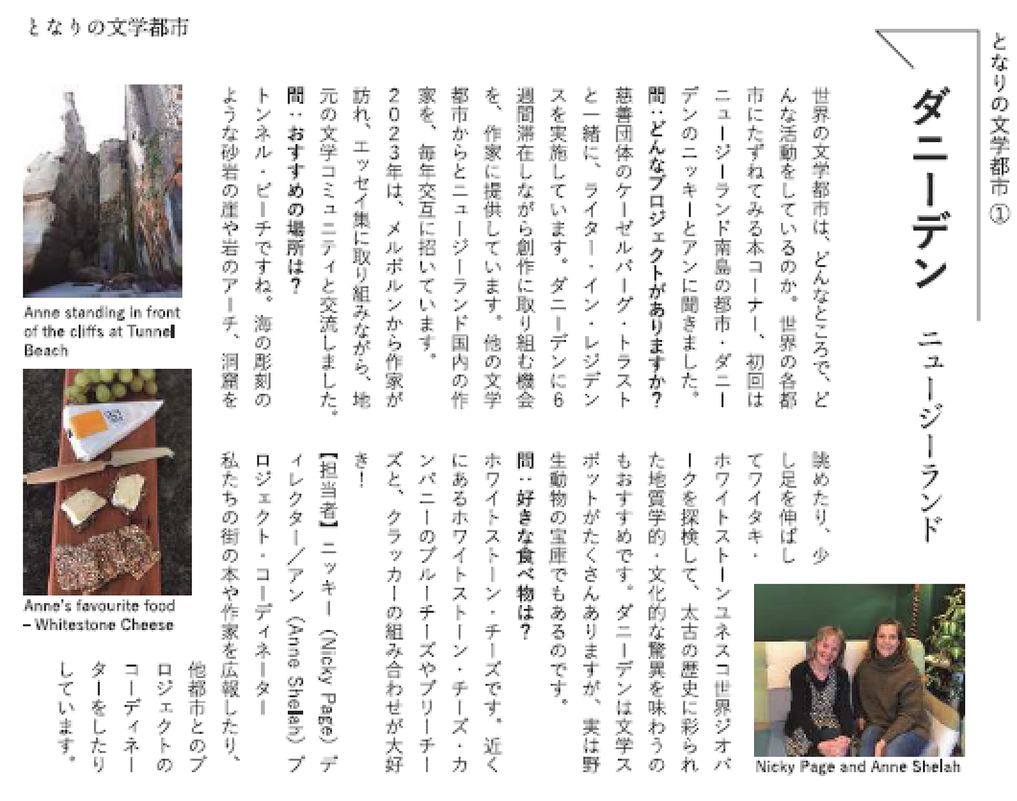 As part of this inaugural issue, we were delighted to introduce Dunedin UNESCO City of Literature to Okayama’s readers. We shared insights into our work, including: