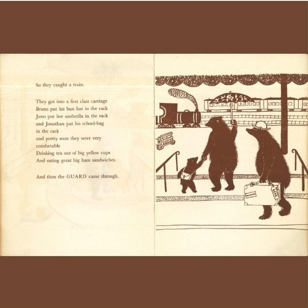 Three brown bears and the manpower man is the only collaboration between the two women that we know of. Published in 1945, it is a children’s book about housing shortages, as well as manpower regulations during and just after World War two whereby workers could be directed to work in essential industries.