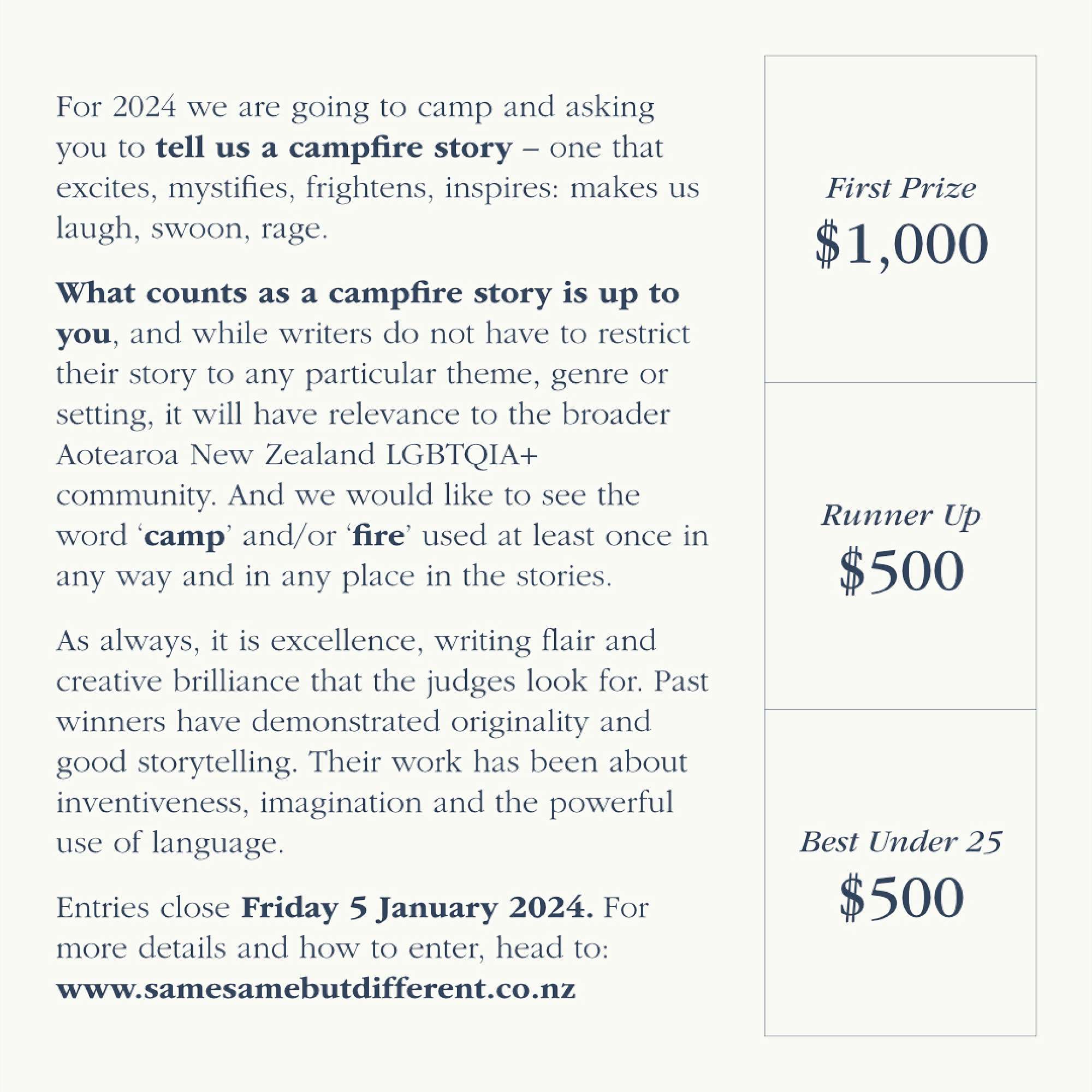 Opportunity for Aotearoa-based LGBTQIA+ authors. Stories must be received by midnight on Friday 5 January 2024.