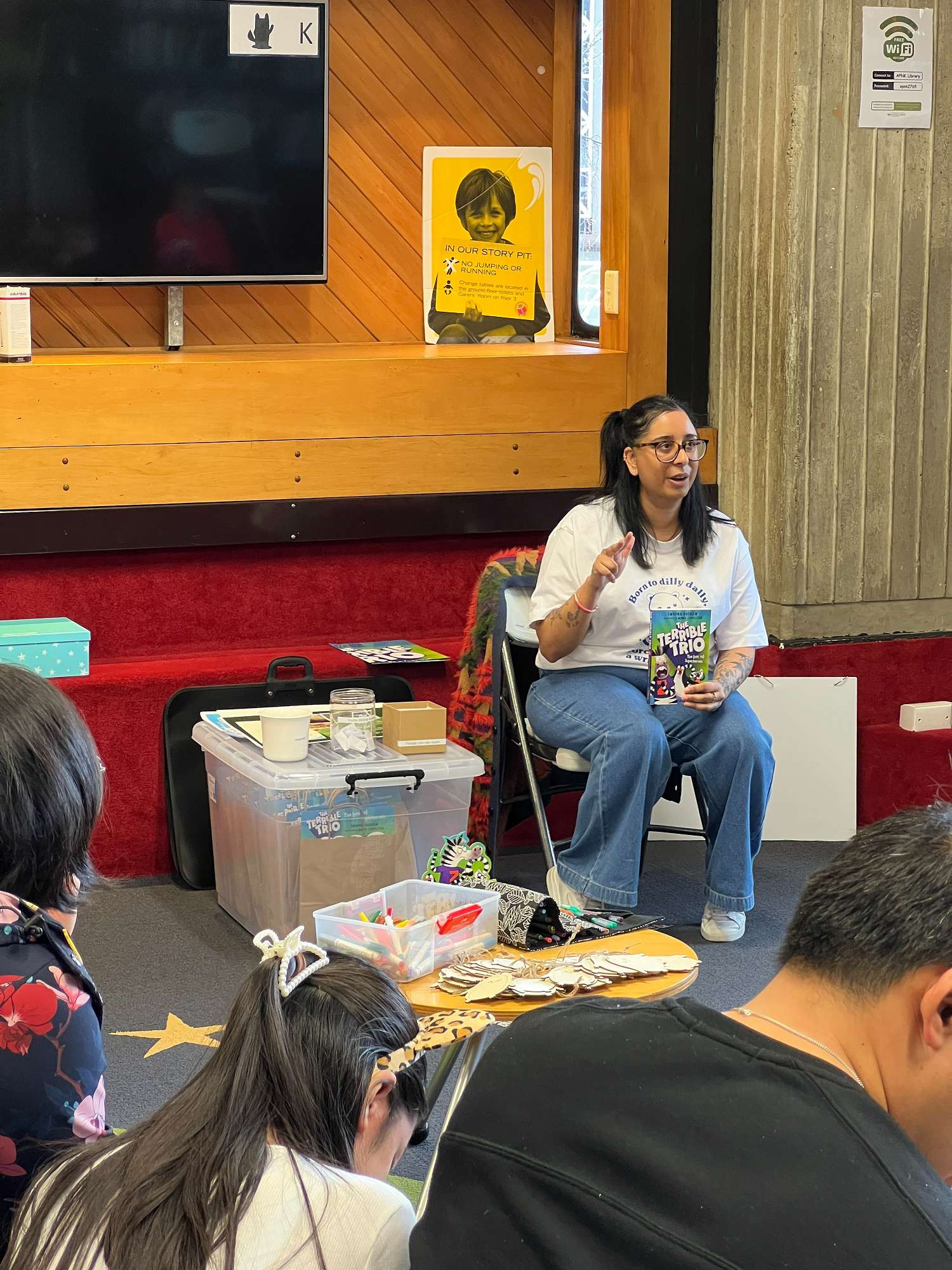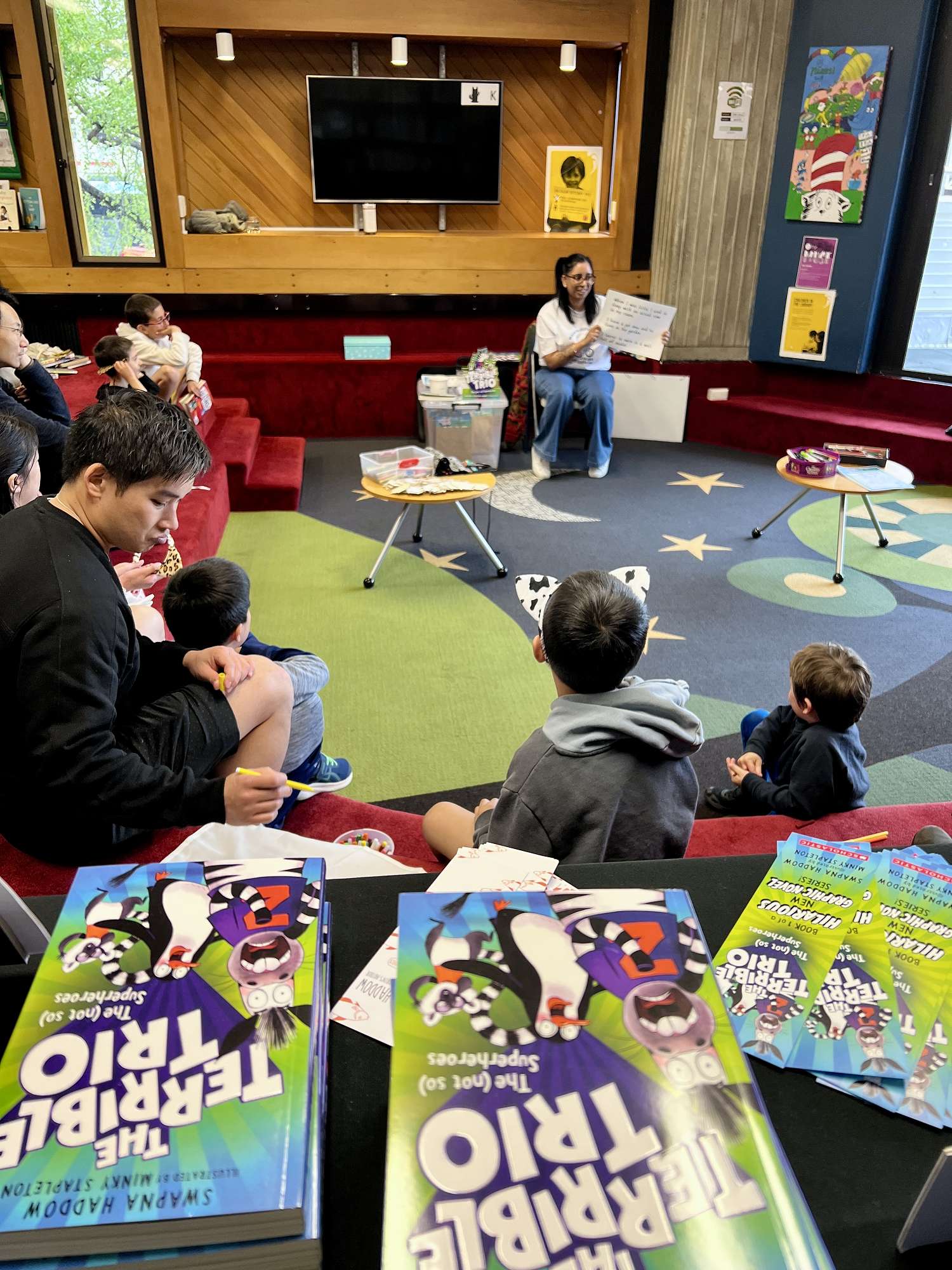 Families braved the weather to join author Swapna Haddow for an afternoon of stories, laughter, and capes as she introduced her new book The Terrible Trio: The (not so) Superheroes.
