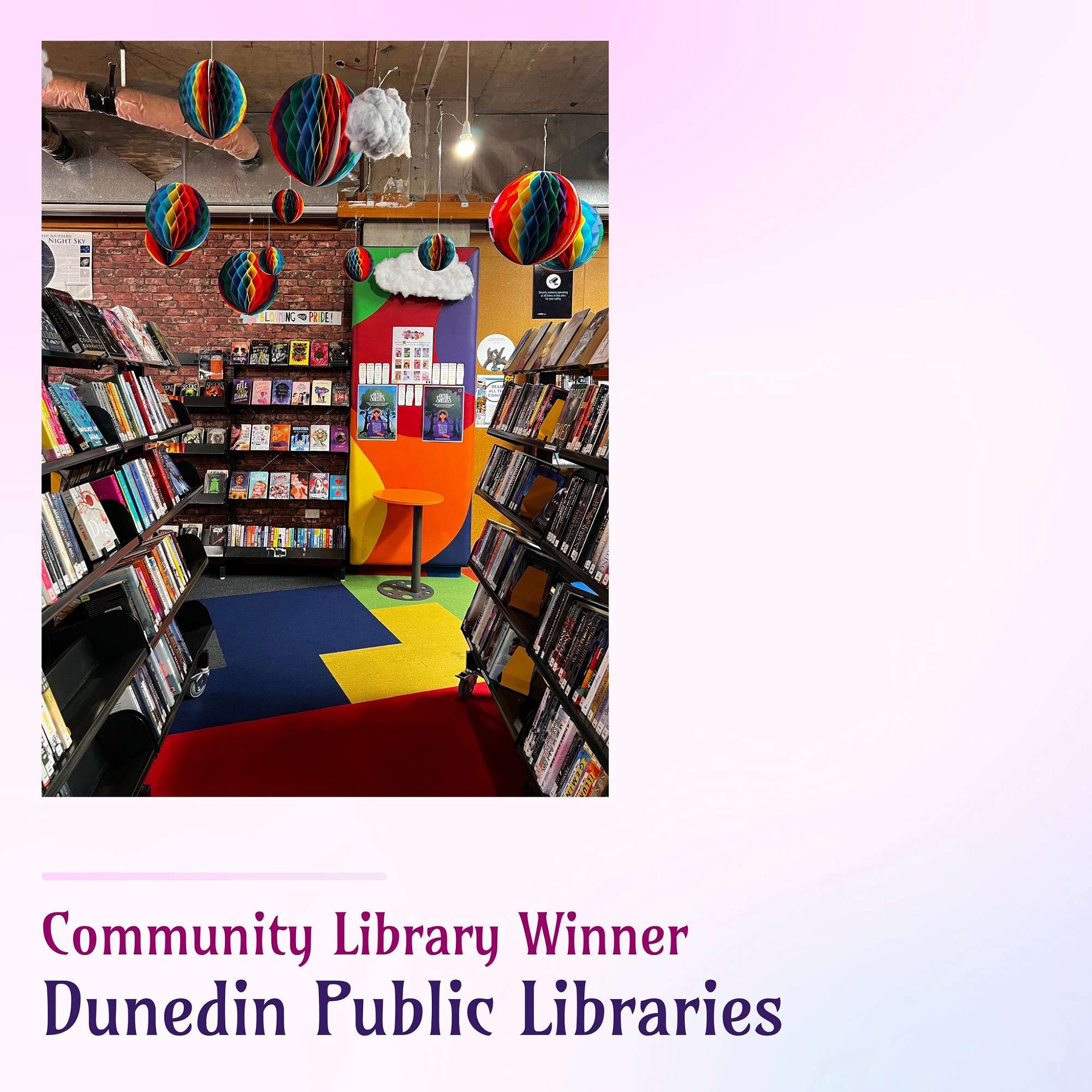The annual Out on the Shelves Display Competition is a fabulous opportunity for school and community libraries to uplift and celebrate their rainbow reading collections. Picked from over 60 decadent entries from across the motu Dunedin Public Libraries is the winner of the 2024 Community Library display!
