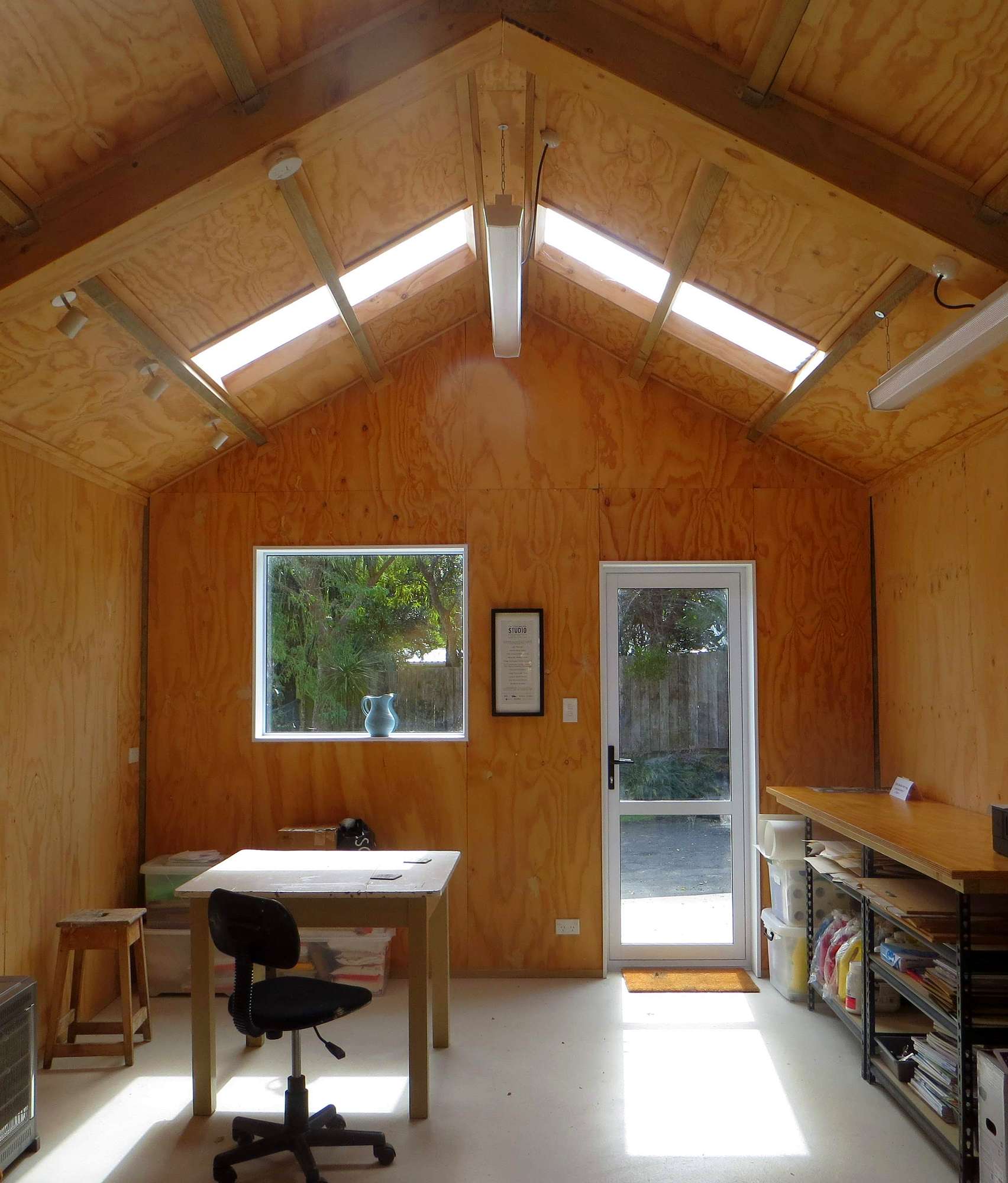 In April 2017 the Trust built the well-appointed Charles Brasch Studio on the section. The artist’s studio is well insulated, light, and is the size of an average sized garage. It has power and water.