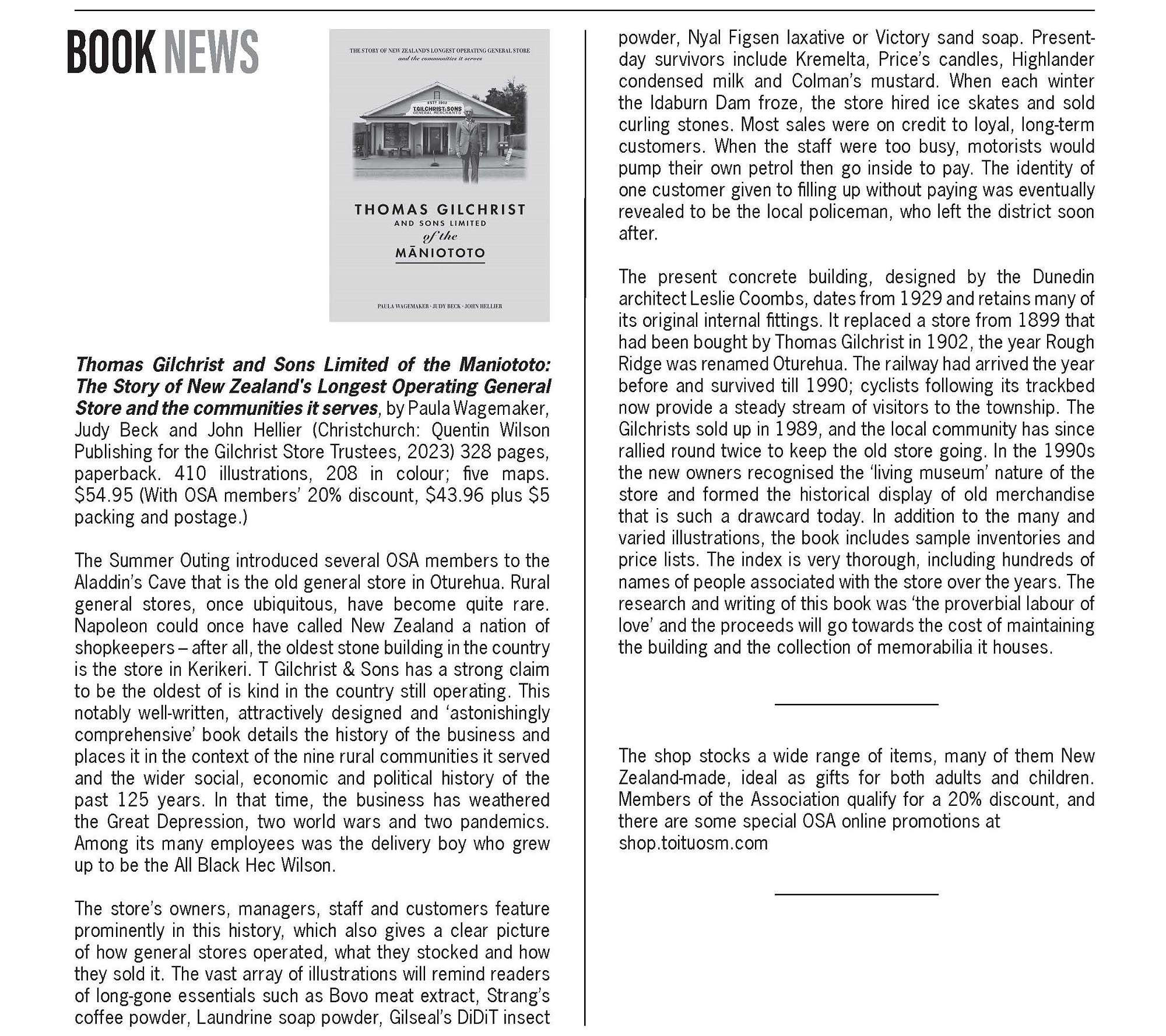Thomas Gilchrist and Sons Limited of the Maniototo: The Story of New Zealand's Longest Operating General Store and the communities it serves, by Paula Wagemaker, Judy Beck and John Hellier (Quentin Wilson Publishing, 2023)