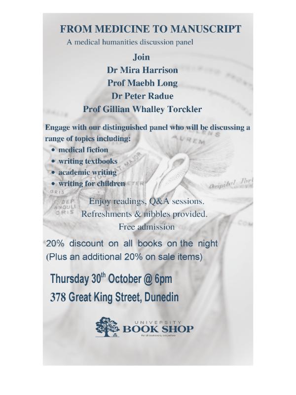 Join Dr Mira Harrison, Prof Maebh Long, Dr Peter Radue and Prof Gillian Whalley Torckler . . .University Book Shop Otago, 378 Great King Street, Dunedin